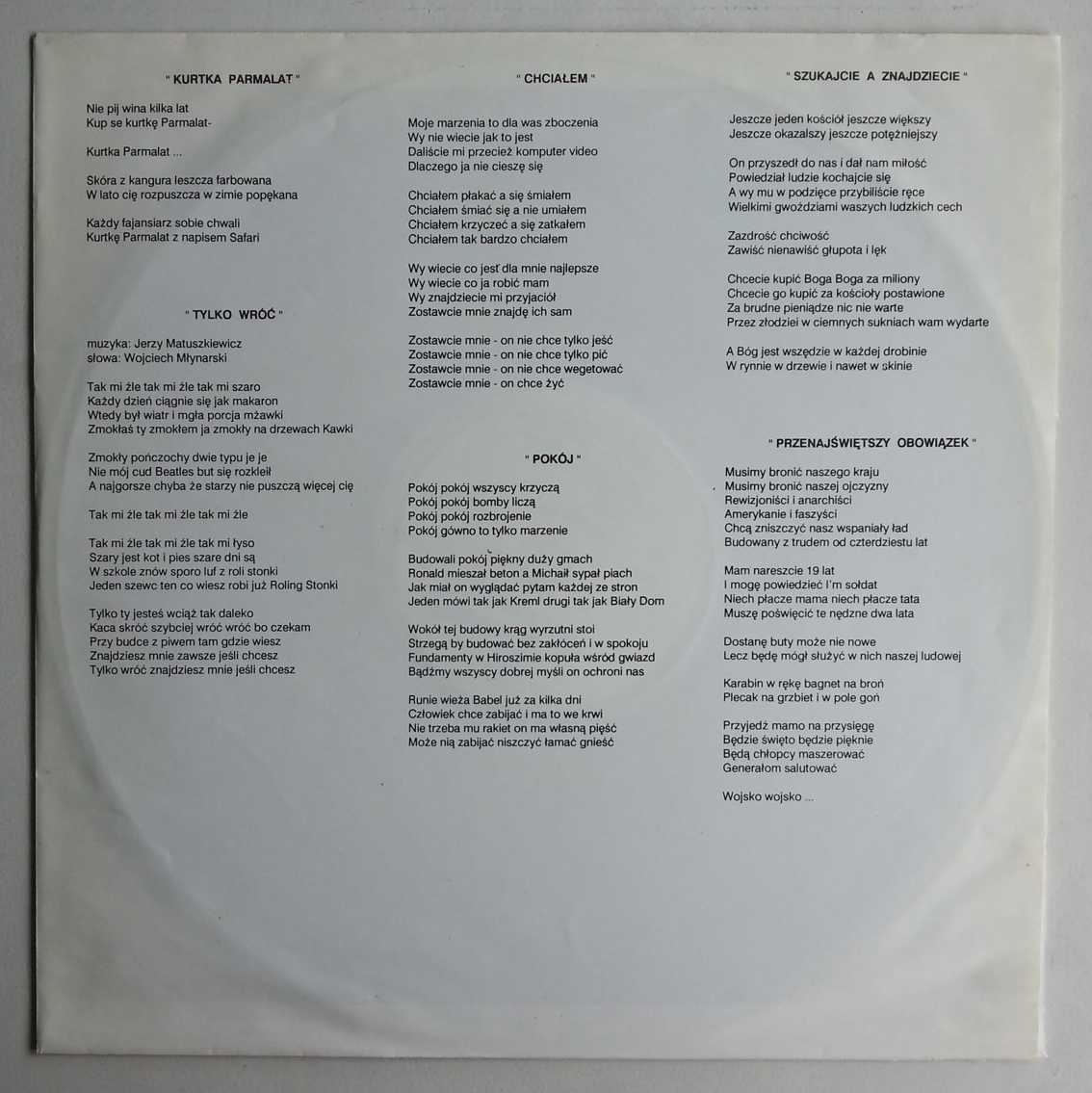 Wytwórnia: POLSKIE NAGRANIA Nr katalogowy: SX 3001 Stan okładki: NM Stan płyty: NM Rozkładana okładka: NIE Rok wydania: 1991 Kraj: POLSKA